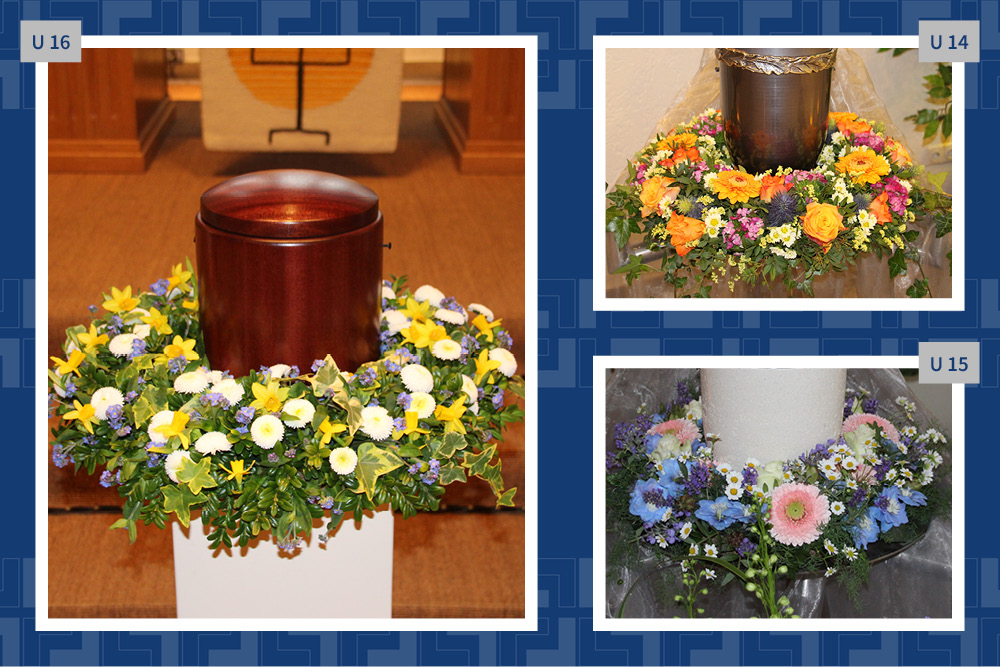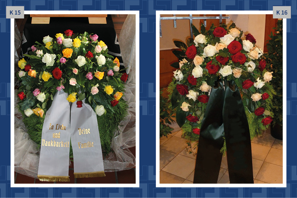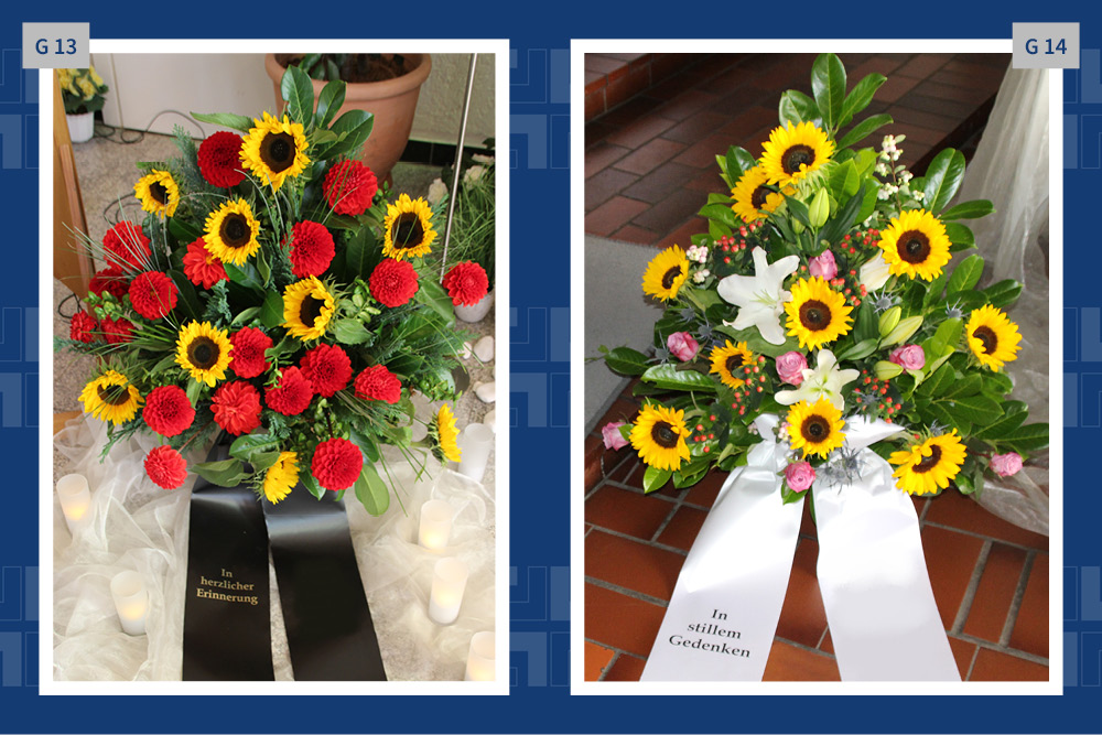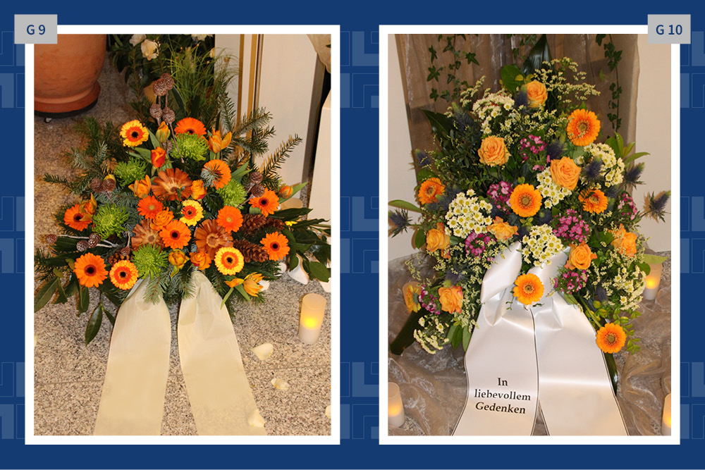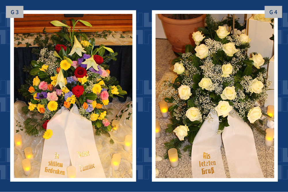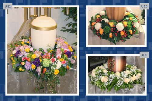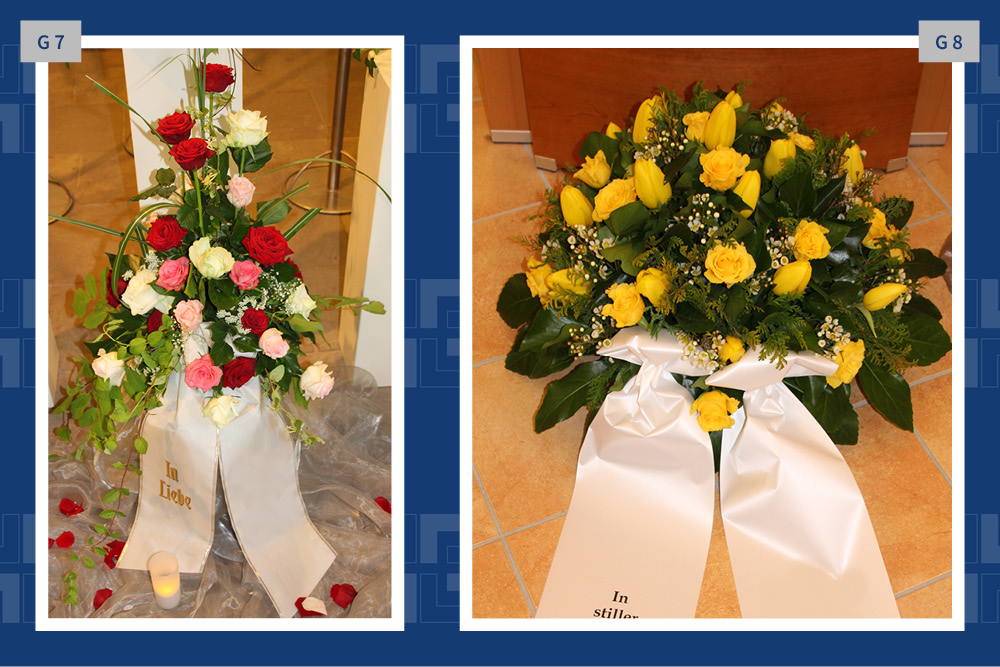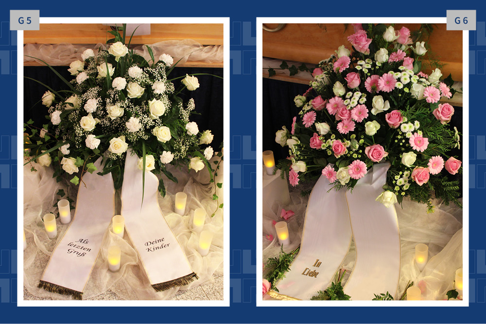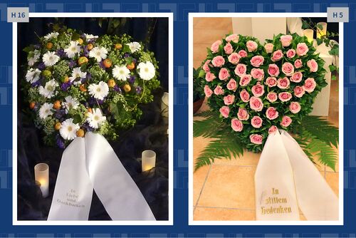 Blumen, Gestecke und Kränze sind mehr als dekorativer Schmuck. Mit der Wahl des Blumenschmucks verabschieden wir uns und senden einen letzten persönlichen Gruß. Gern vermitteln wir Ihnen Floristen und kümmern uns um die Dekoration in der Trauerhalle.