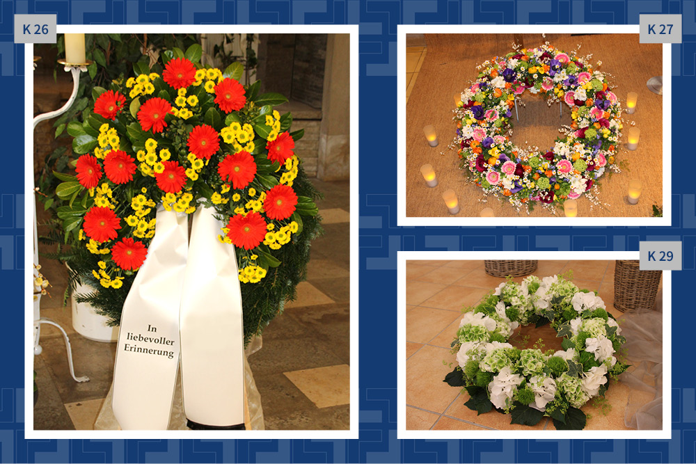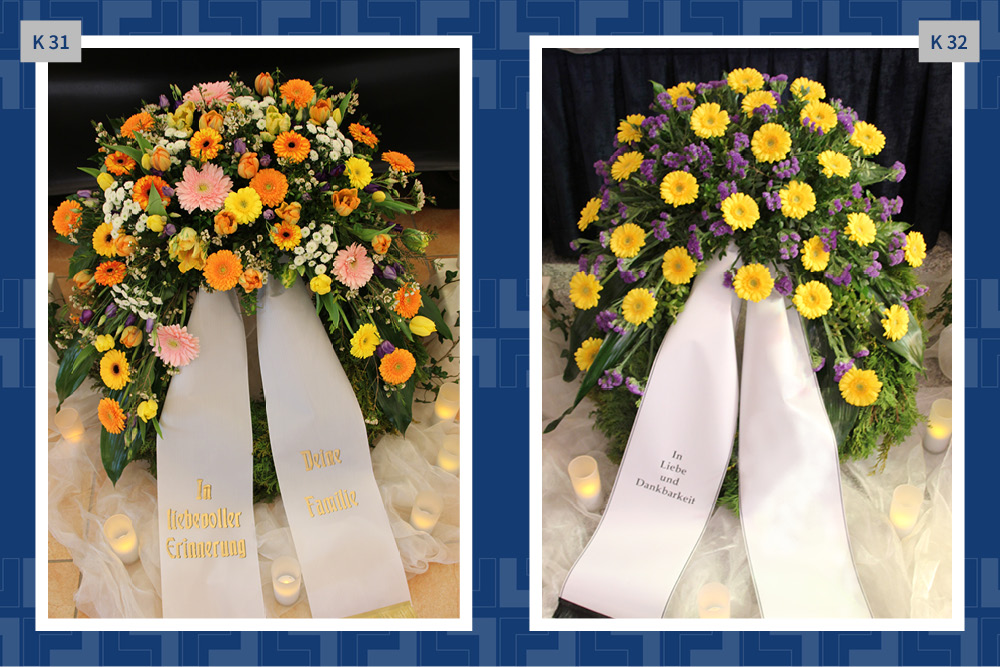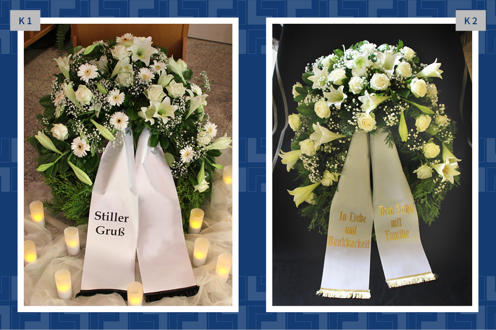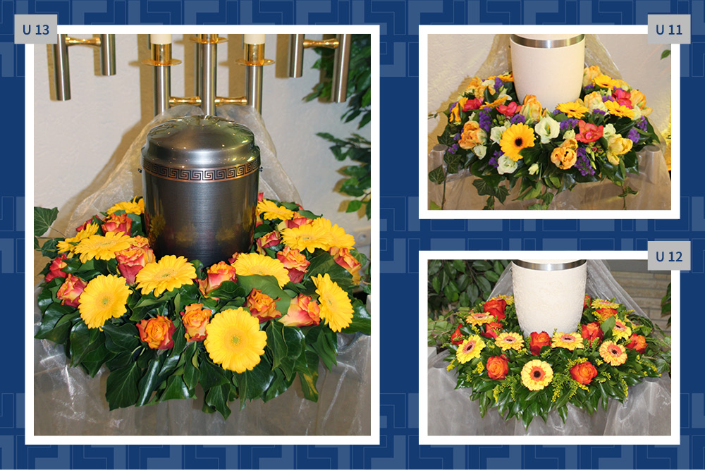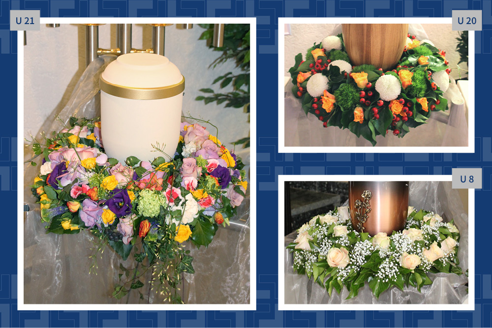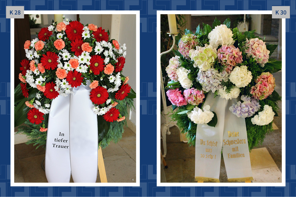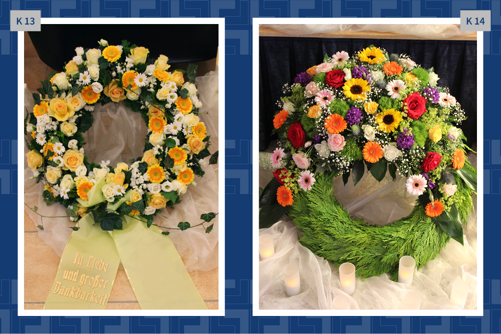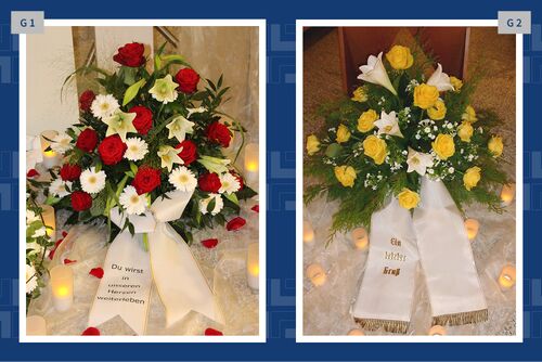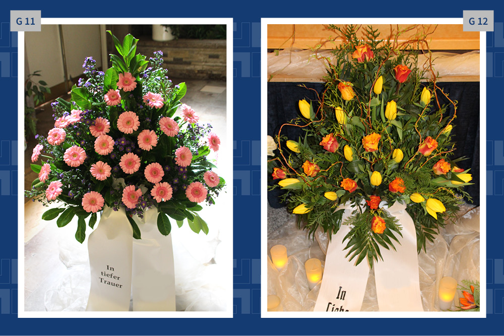Blumen, Gestecke und Kränze sind mehr als dekorativer Schmuck. Mit der Wahl des Blumenschmucks verabschieden wir uns und senden einen letzten persönlichen Gruß. Gern vermitteln wir Ihnen Floristen und kümmern uns um die Dekoration in der Trauerhalle.