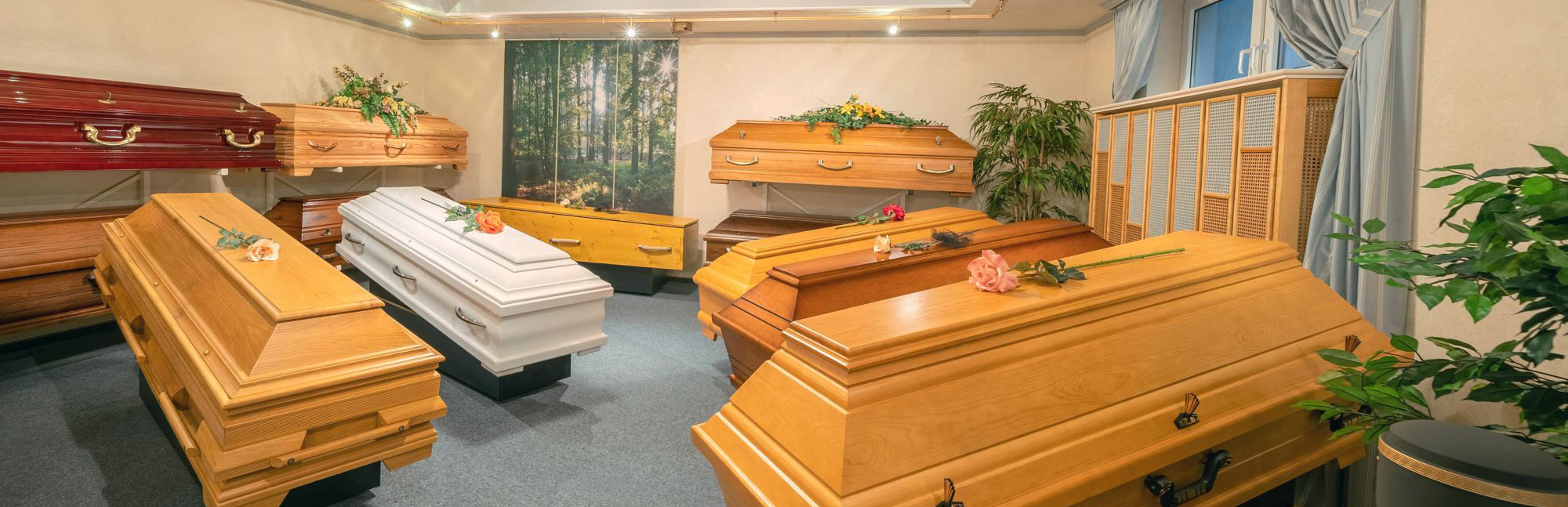 Nehmen Sie sich Zeit und besuchen Sie unsere Ausstellungsräume, wo wir Ihnen unser Sortiment und unsere Produkte für die respektvolle Verabschiedung und letzte Reise näherbringen. Hier können Sie sich ganz in Ruhe alles anschauen und auswählen. Auf Wunsch begleiten wir Sie dabei beratend.